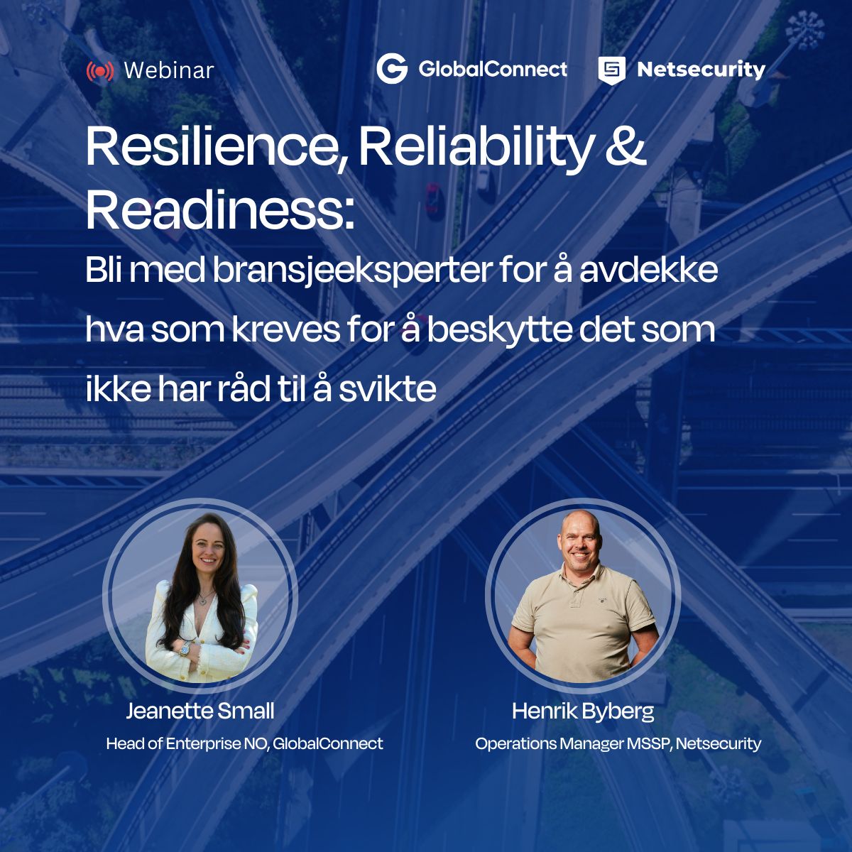 Lær hvordan du kan bygge IT-miljøer som tåler belastning, står stødig mot trusler og er klare når uforutsette hendelser oppstår. Eksperter fra GlobalConnect og Netsecurity deler praktiske erfaringer og konkrete råd om hvordan du kan styrke digital infrastruktur, håndtere kritiske IT-risikoer og redusere menneskelige faktorer som sårbarheter.