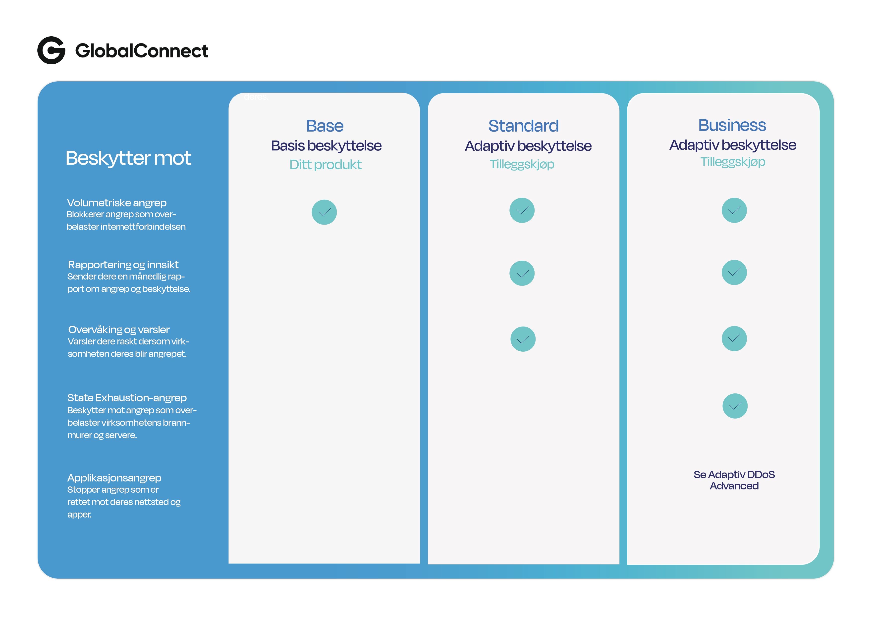 GlobalConnect tilbyr flere nivåer av DDoS-beskyttelse – tilpasset ulike behov: